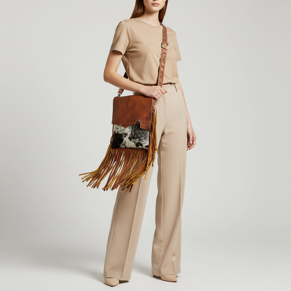 • Premium Quality Material: This Is A Handmade American Darling Women'S Messenger Bag Made With Soft And Supple Handpicked Hair On Genuine Cowhide Leather. High Quality Soft And Supple Eco Friendly Vegetable-Tanned Full Grain And Hand-Tooled Genuine Leather Is Also Used To Make This Handbag That Ages Beautifully As It Wears. These Women'S Messenger Handbags Are Complemented With A Beautiful Leather Fringe Giving It A Western Look. Available In Size: 14In (H) X 12In (W)