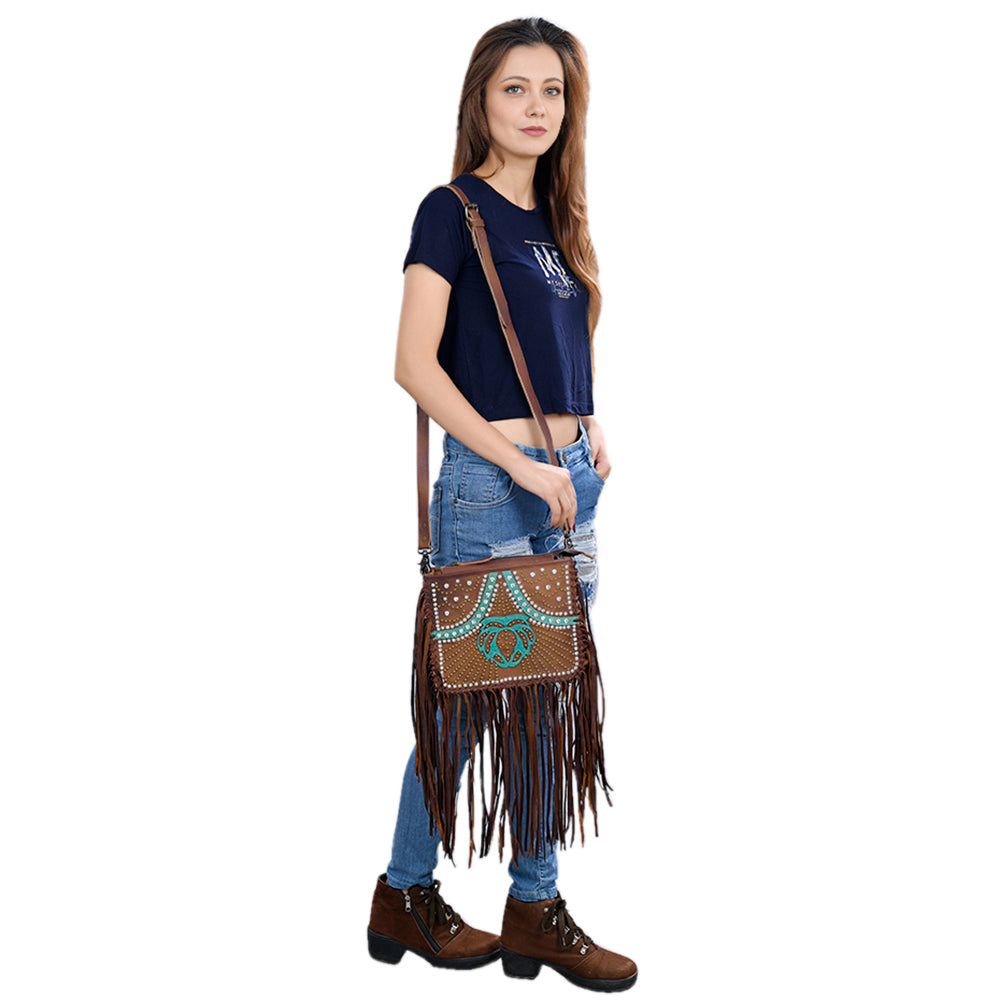 American Darling ADBG1322A Hand Tooled Hair-On Genuine Leather Women Bag Western Handbag Purse