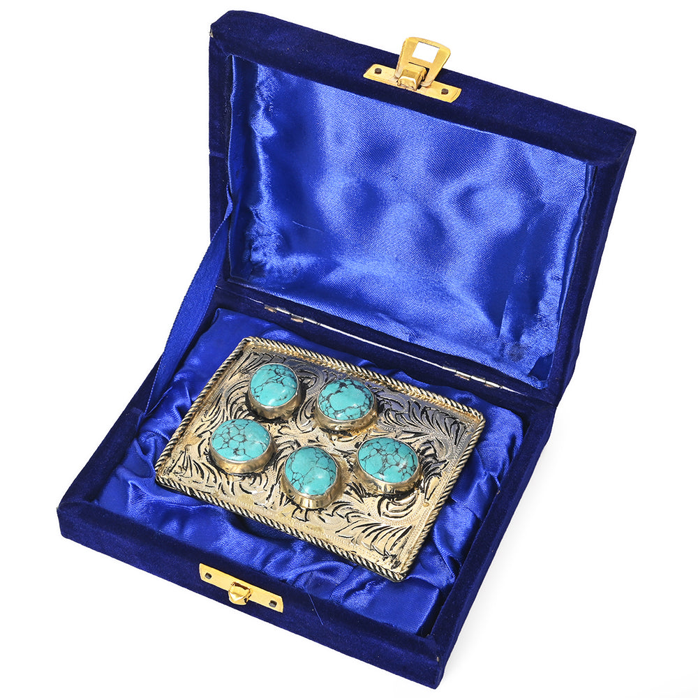 • Central Turquoise Accent: Highlights a prominent oval turquoise rhinestone centerpiece, encircled by a twisted rope border for a classic Southwestern look.