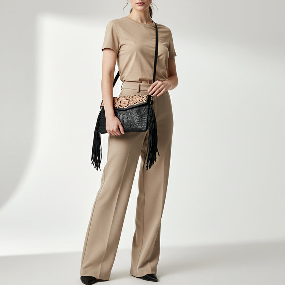 American Darling Hand-Tooled Wallet Hand Bag Genuine Leather Fringe Style with Premium Craftsmanship and Functional Everyday Design