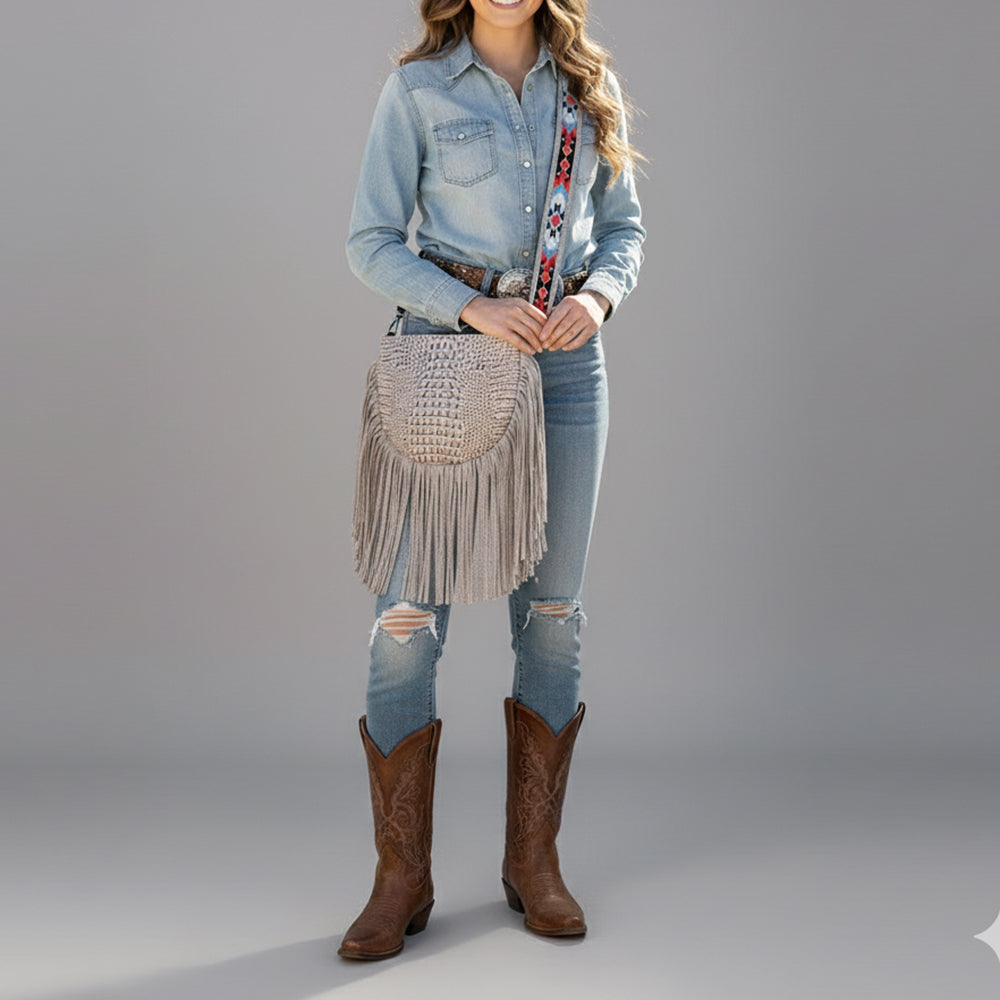 American Darling Western Crossbody Bag Handcrafted from Crocodile Embossed Leather