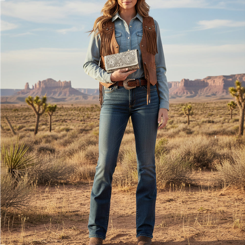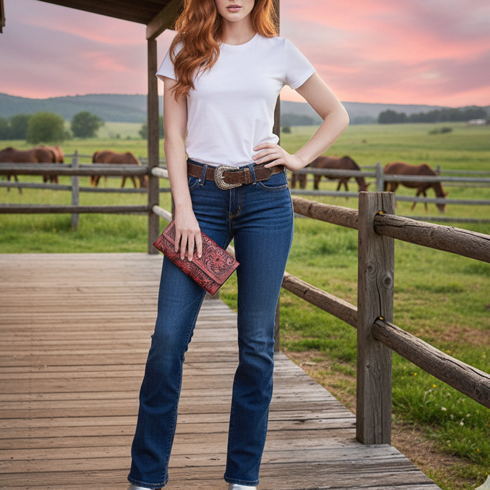 American Darling Wallet Hand Tooled Genuine Leather Western Women Bag