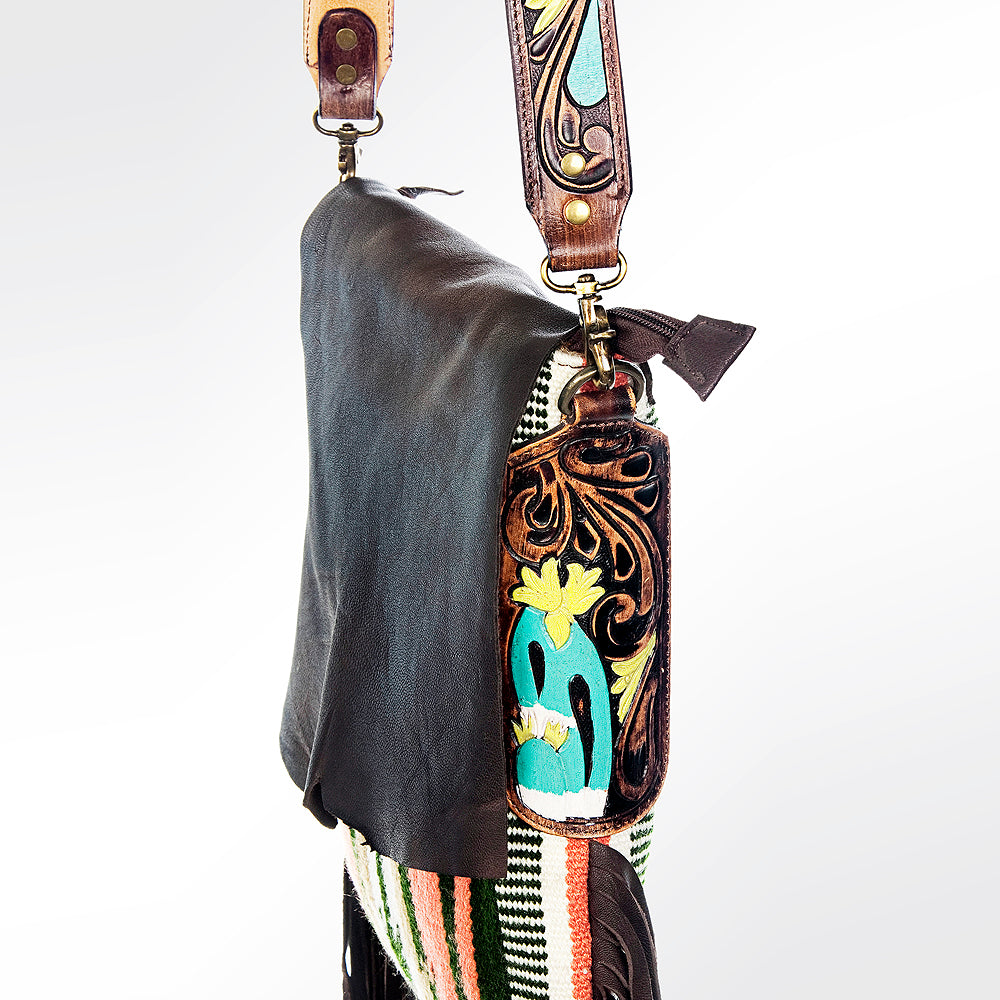 American Darling Messenger Saddle Blanket Fabric Genuine Leather Western Women Bag Handbag Purse