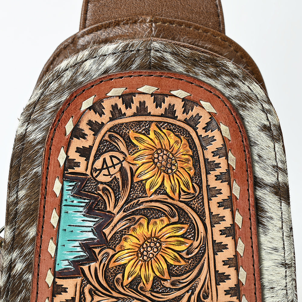 American Darling Sling Beautifully Hand Tooled Hair-On Genuine Leather women bag western handbag purse