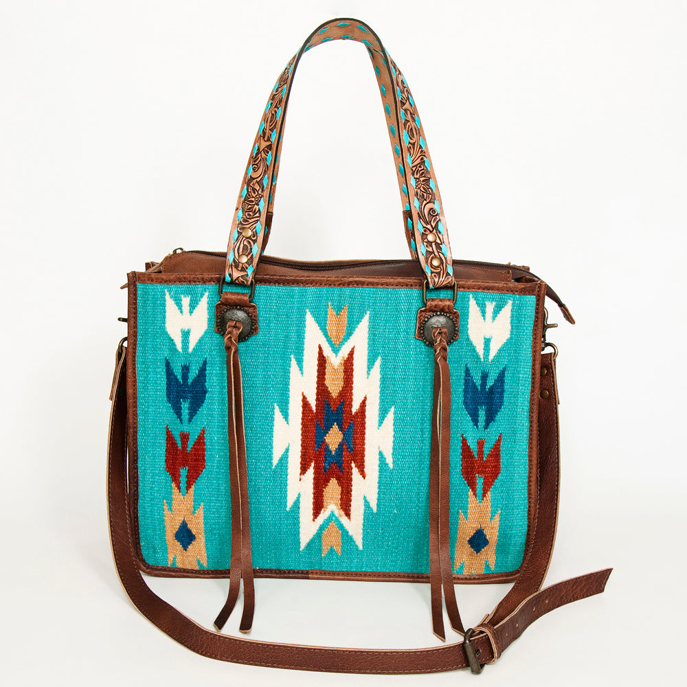 American Darling Women's Tote Bag Western Saddle Blanket Genuine Leather Handbag and Ladies Purse