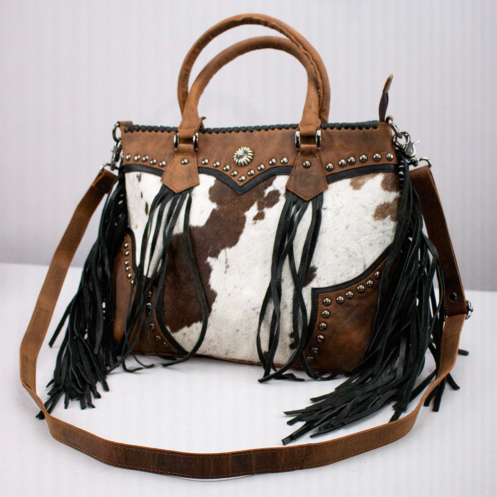 American Darling Western Handbag Rustic Cowhide Satchel Leather Fringe