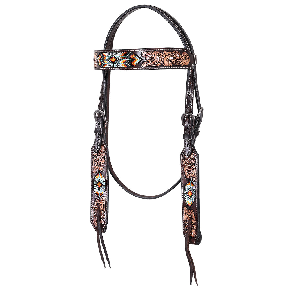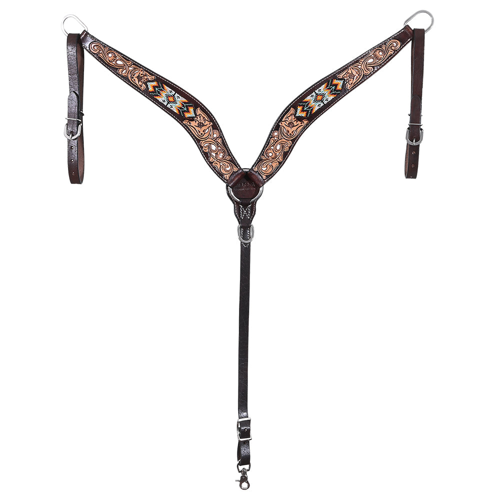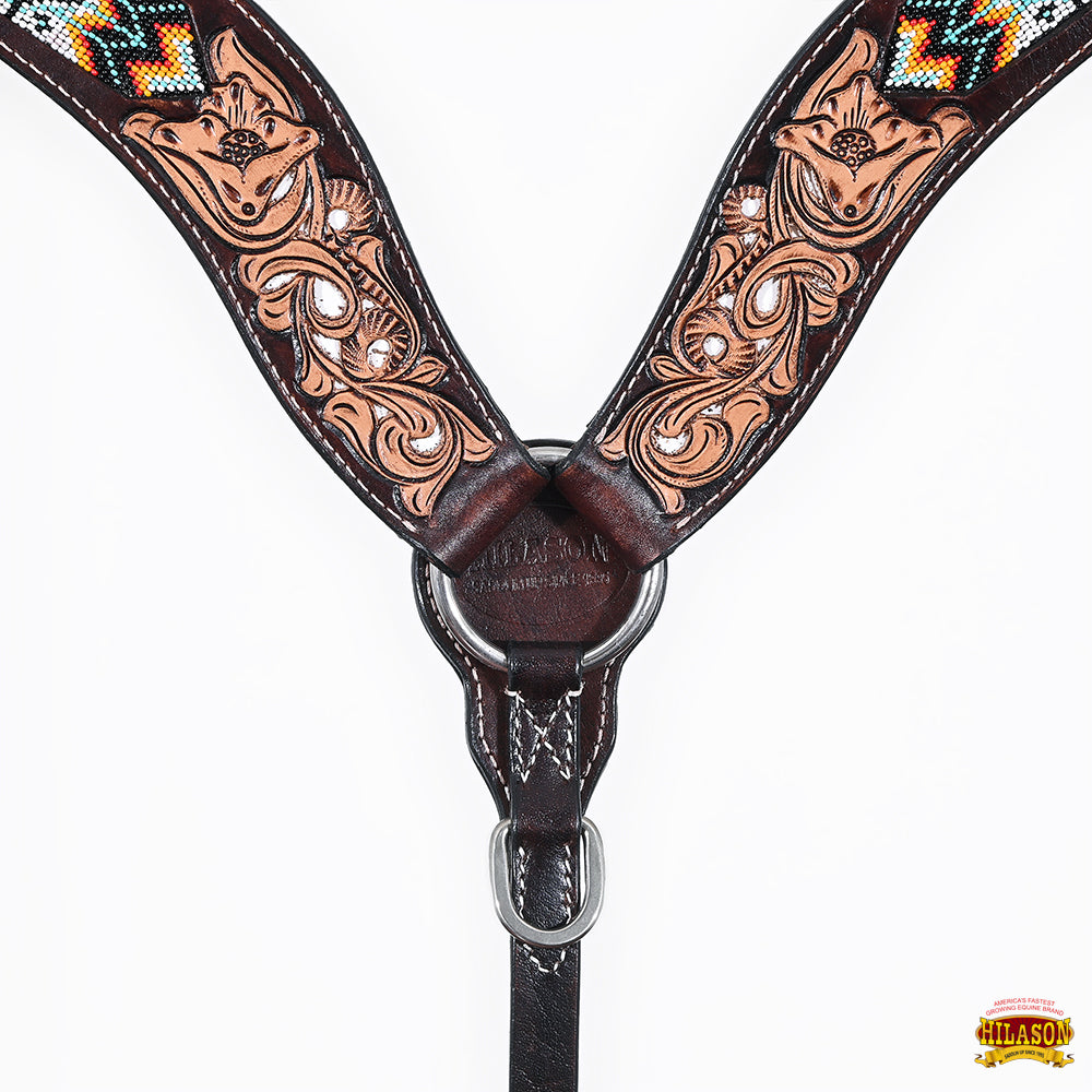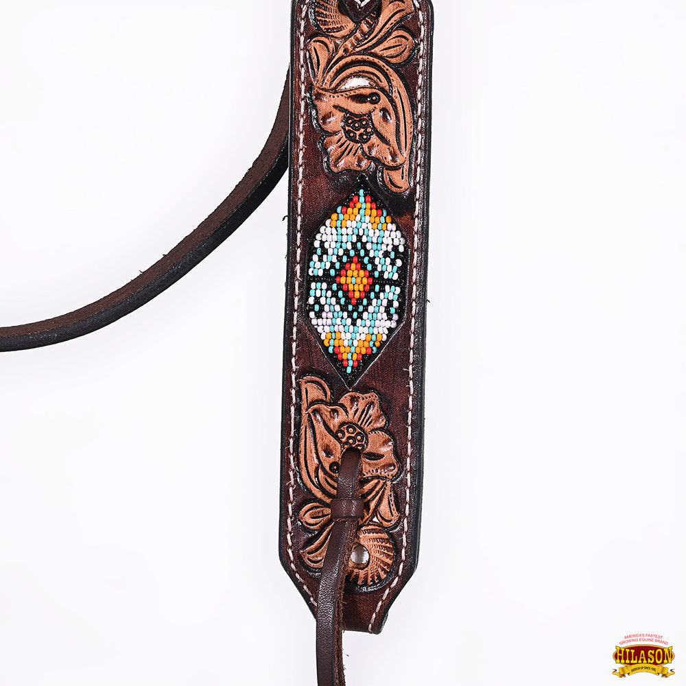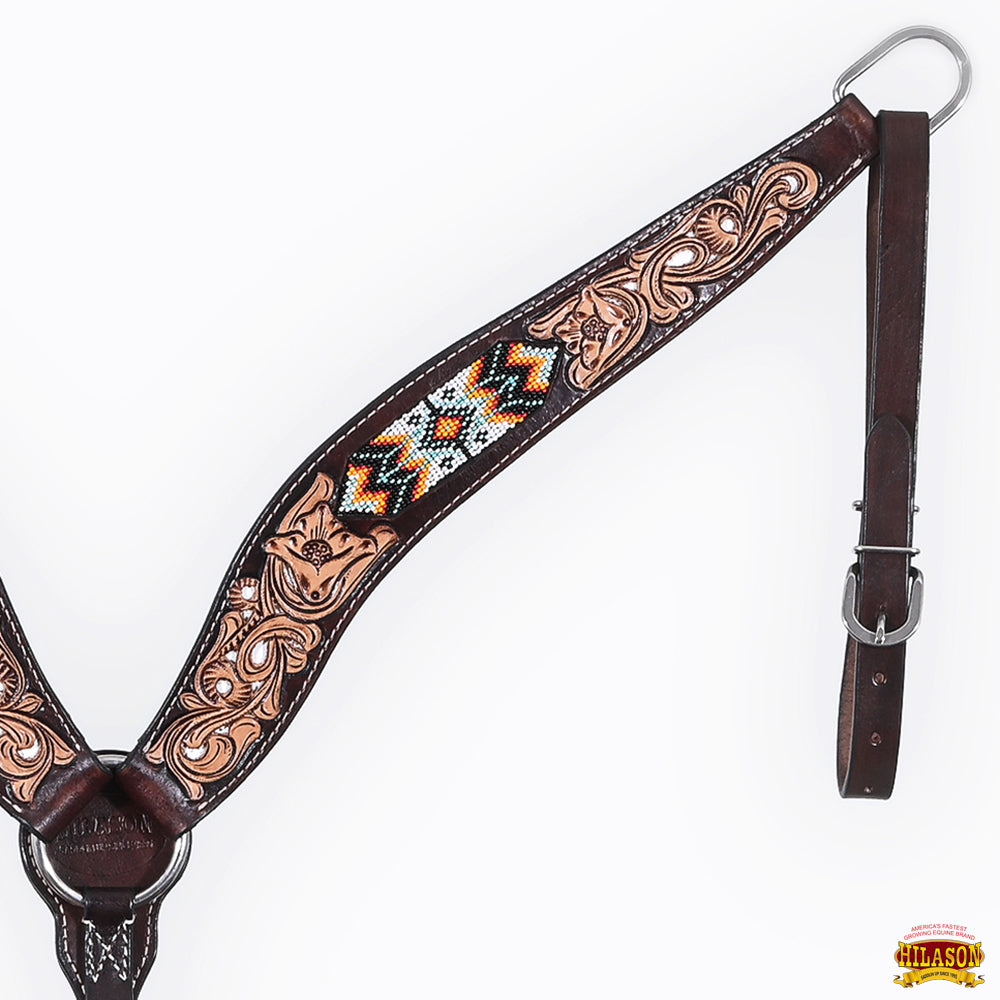 HILASON Western Leather Horse Headstall & Breast Collar Floral Beaded Brown
