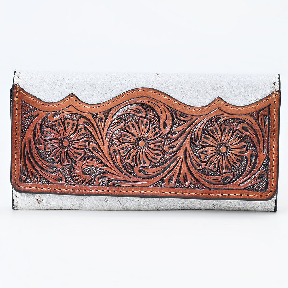 OHLAY WALLET Hand Tooled Hair-on Genuine Leather women bag western handbag purse