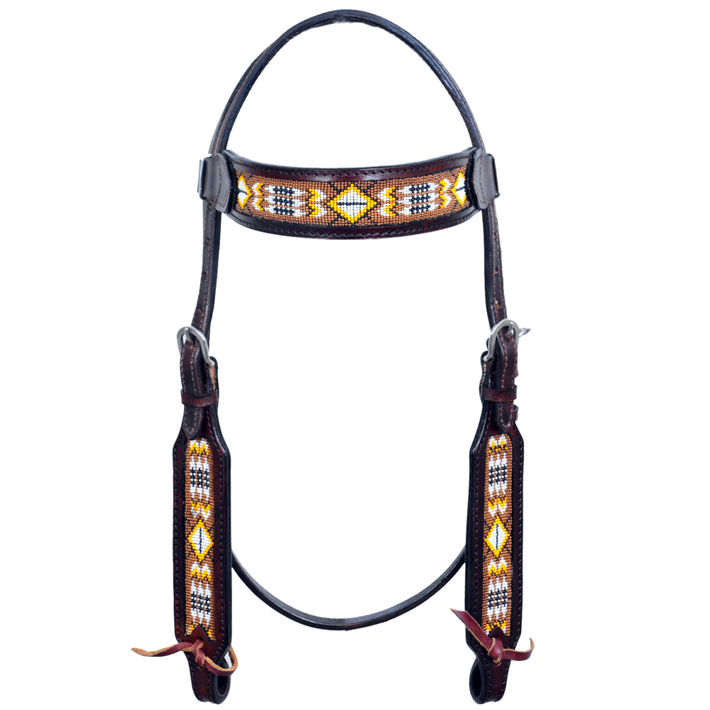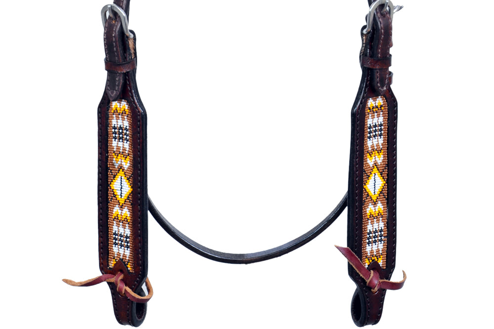 HILASON Western Horse Leather Headstall & Breast Collar Set Black Beaded