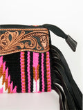 American Darling Clutch Hand Tooled Saddle Blanket Fabric Genuine Leather Western Women Bag Handbag Purse