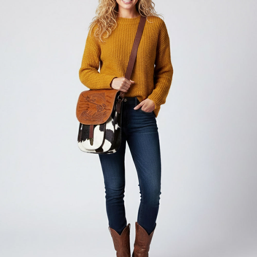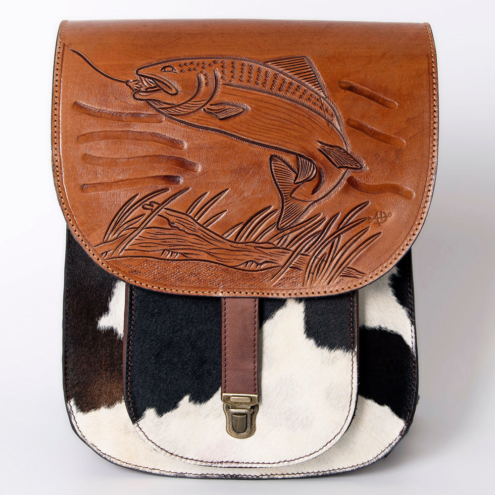 American Darling Backpack Hand Tooled Hair On Genuine Leather Women bag