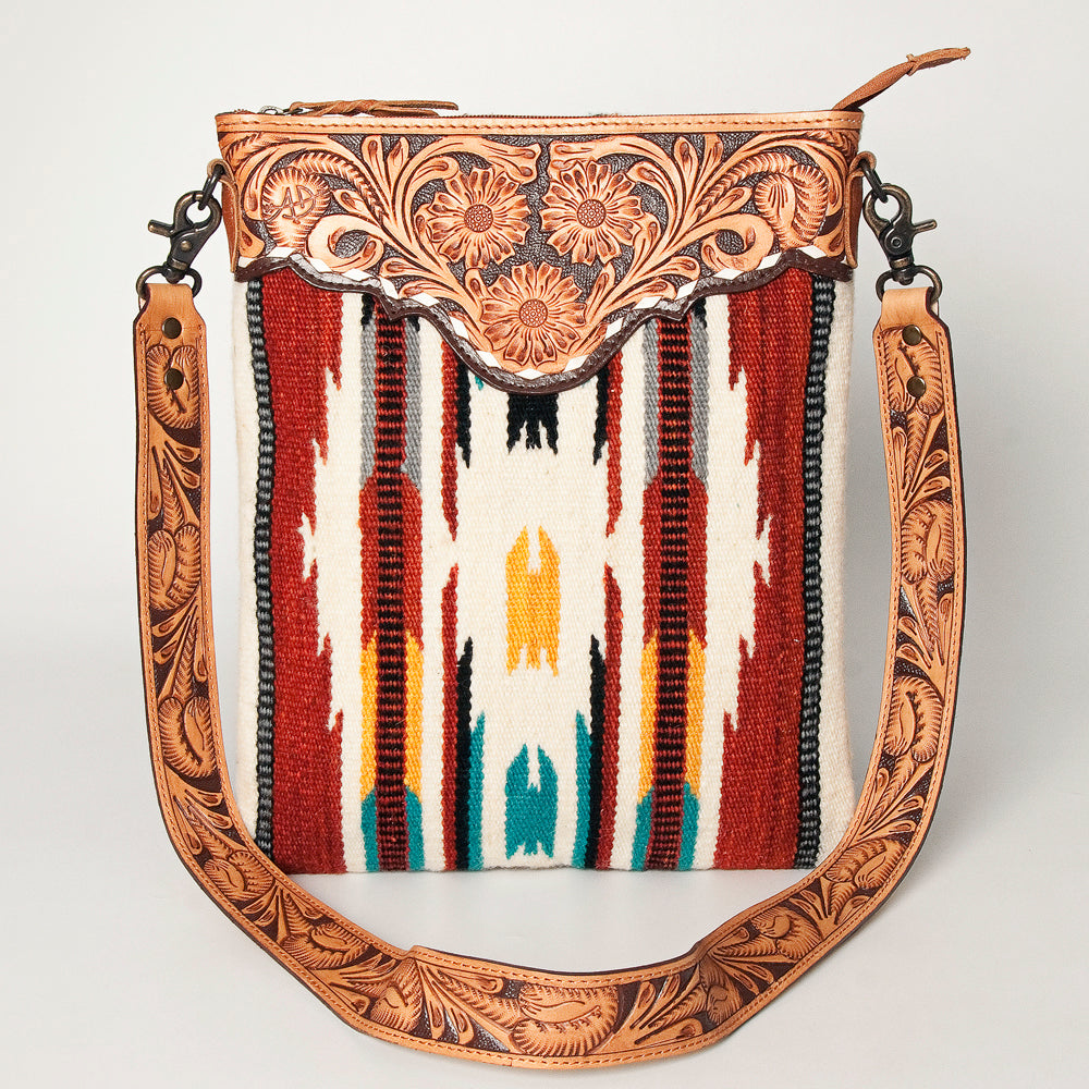 American Darling Cross Body Saddle Blanket Fabric Genuine Leather Western Women Bag