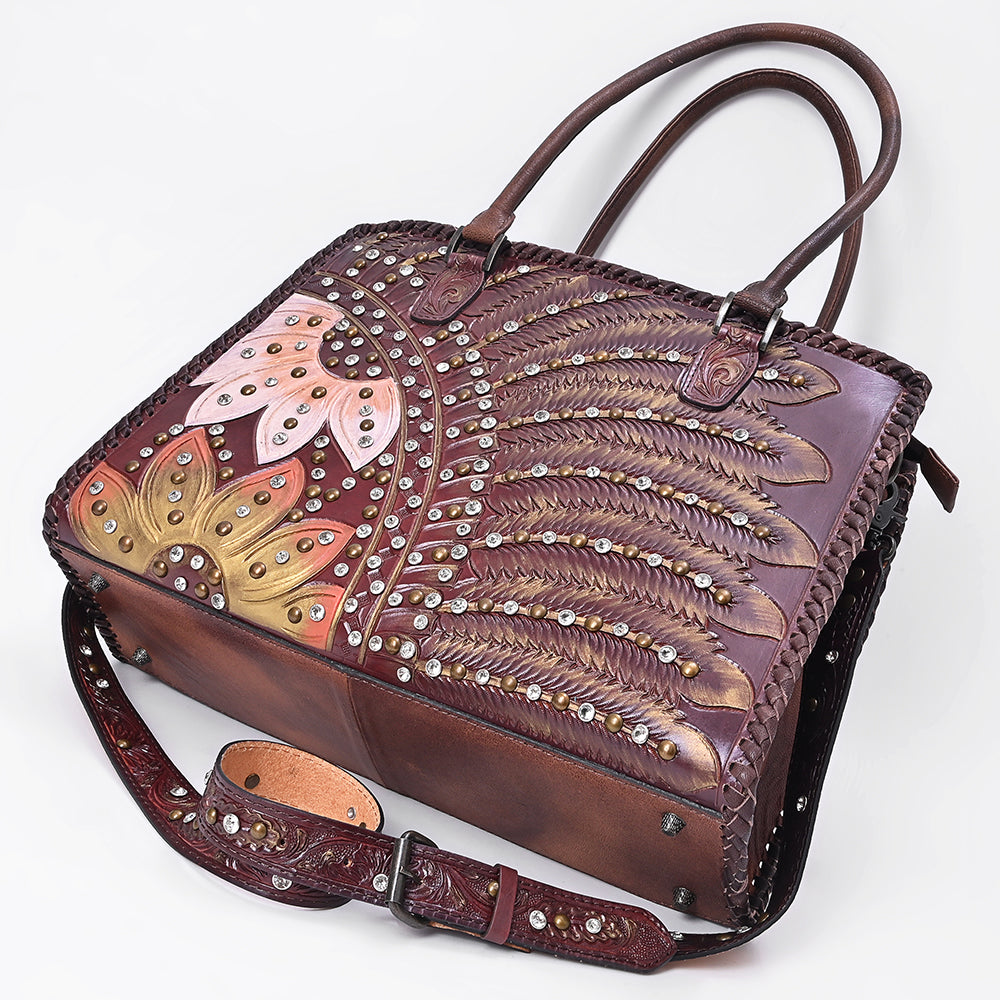 American Darling Tote Hand Tooled Genuine Leather Women's Handbag with Rivets