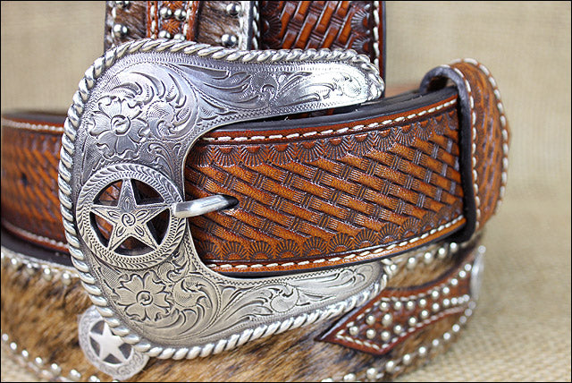 W. Cowboy Belt Nocona Hair Star Concho Brown Leather 34-46 Ines –