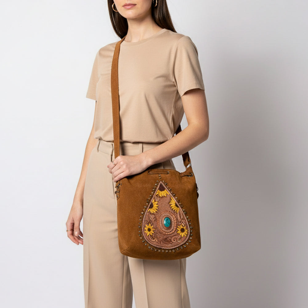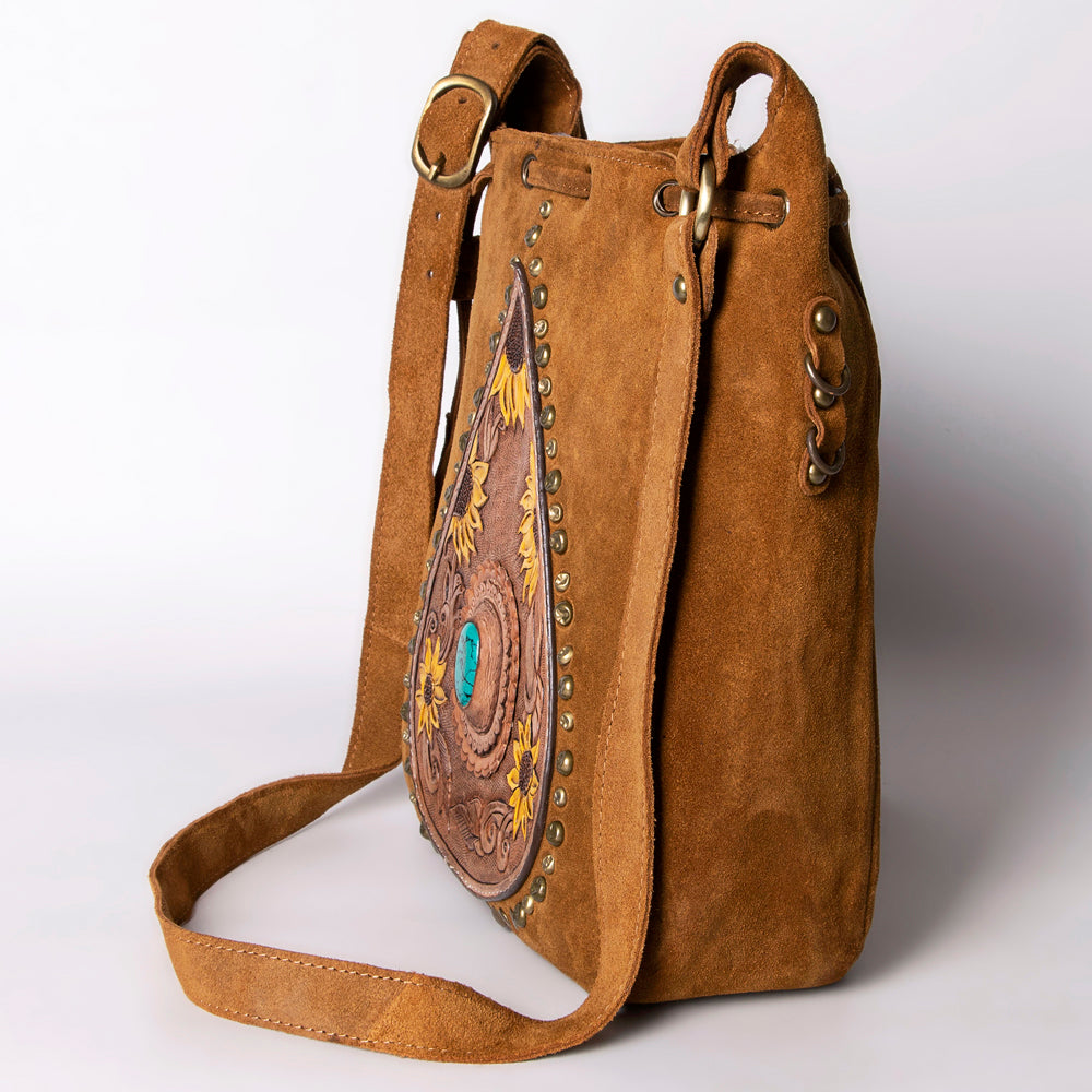 American Darling Bucket Suede Hand Tooled Genuine Leather Western Women Bag