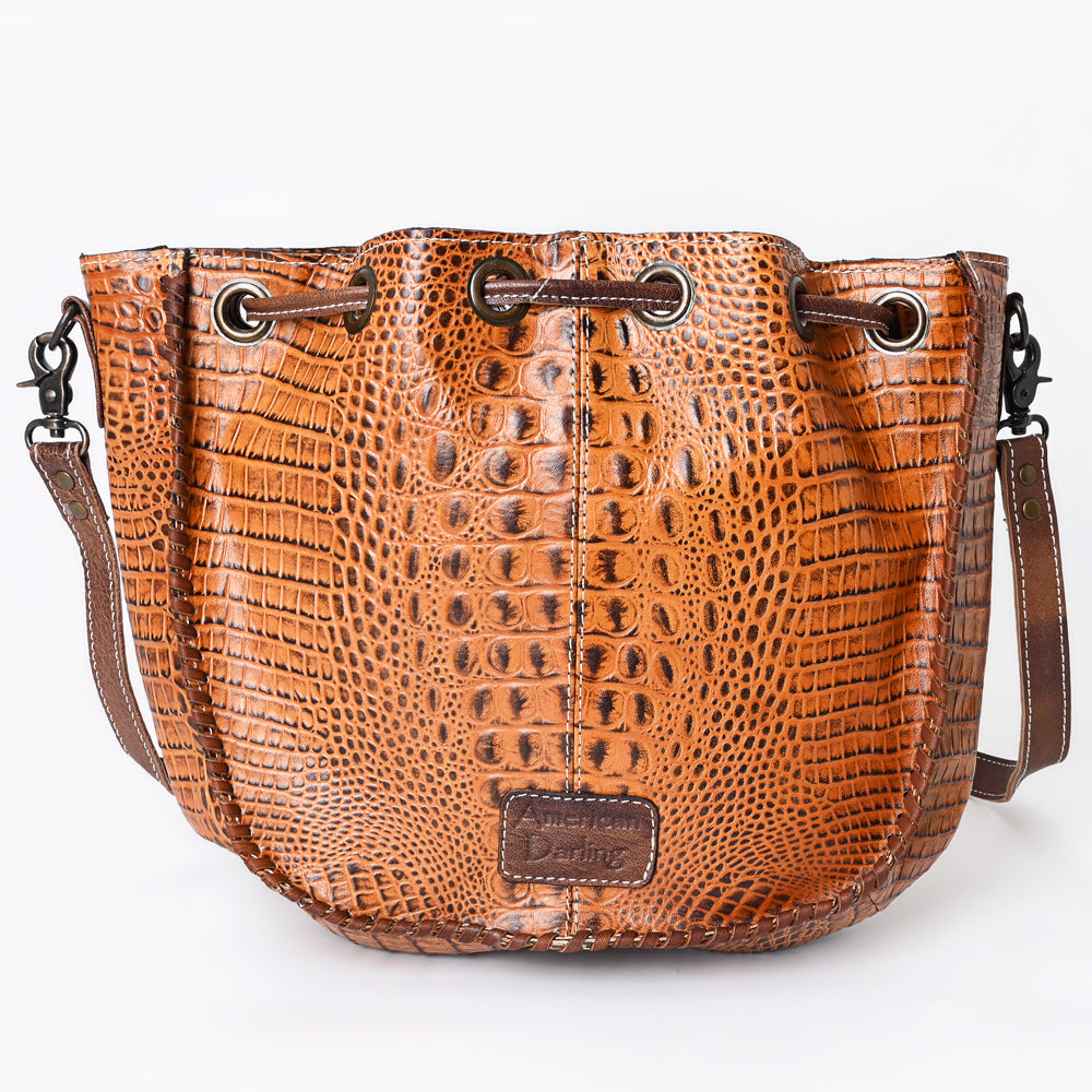 American Darling Bucket Crocodile Embossed Genuine Leather Western Women Bag Handbag Purse