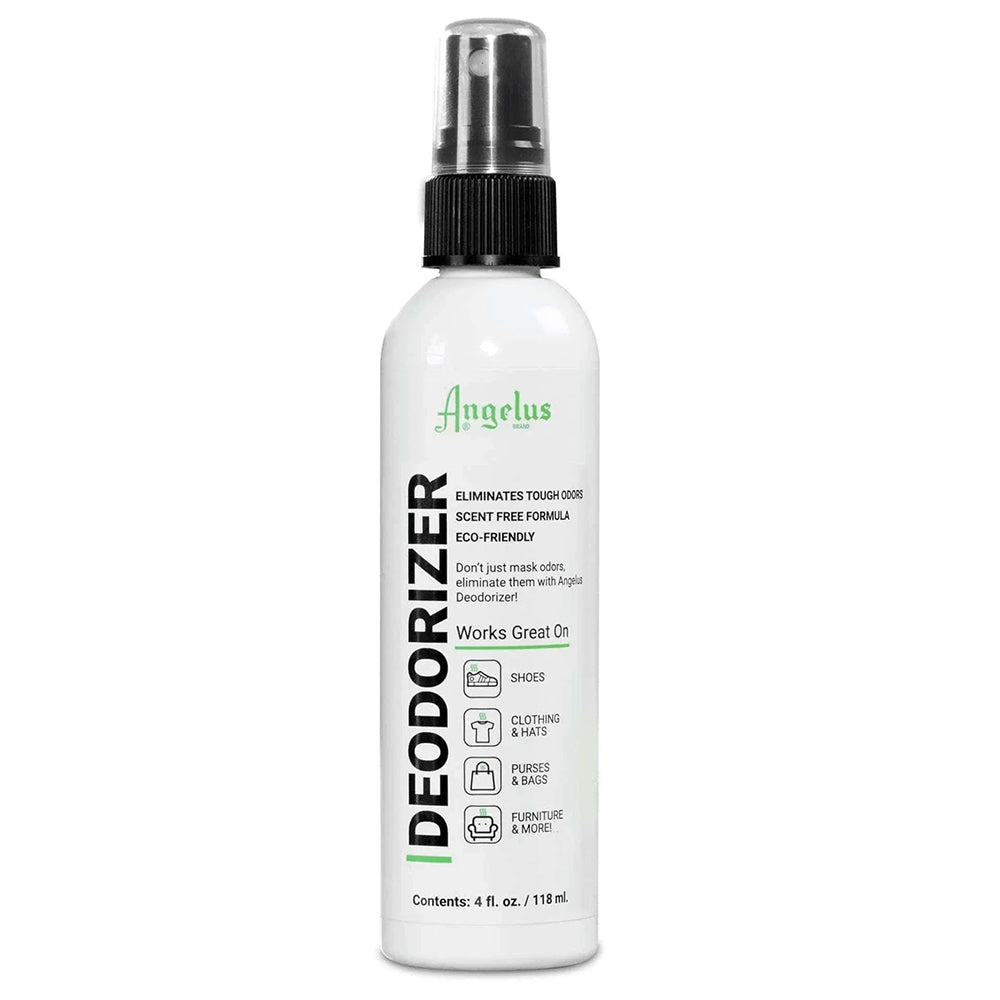 • Experience a truly fresh clean with Angelus Deodorizer, the professional solution for eliminating stubborn smells at the source. Unlike standard sprays that use heavy perfumes to temporarily mask odors, this unscented, eco-friendly formula targets and destroys odor-causing agents for a permanent fix. Safe for use on a wide variety of surfaces, it is the perfect final step for shoe restorations or daily maintenance of high-traffic gear.