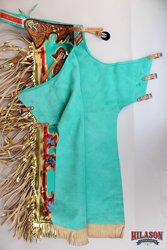 HILASON Pro Rodeo Bull Riding Chaps Genuine Leather Turquoise