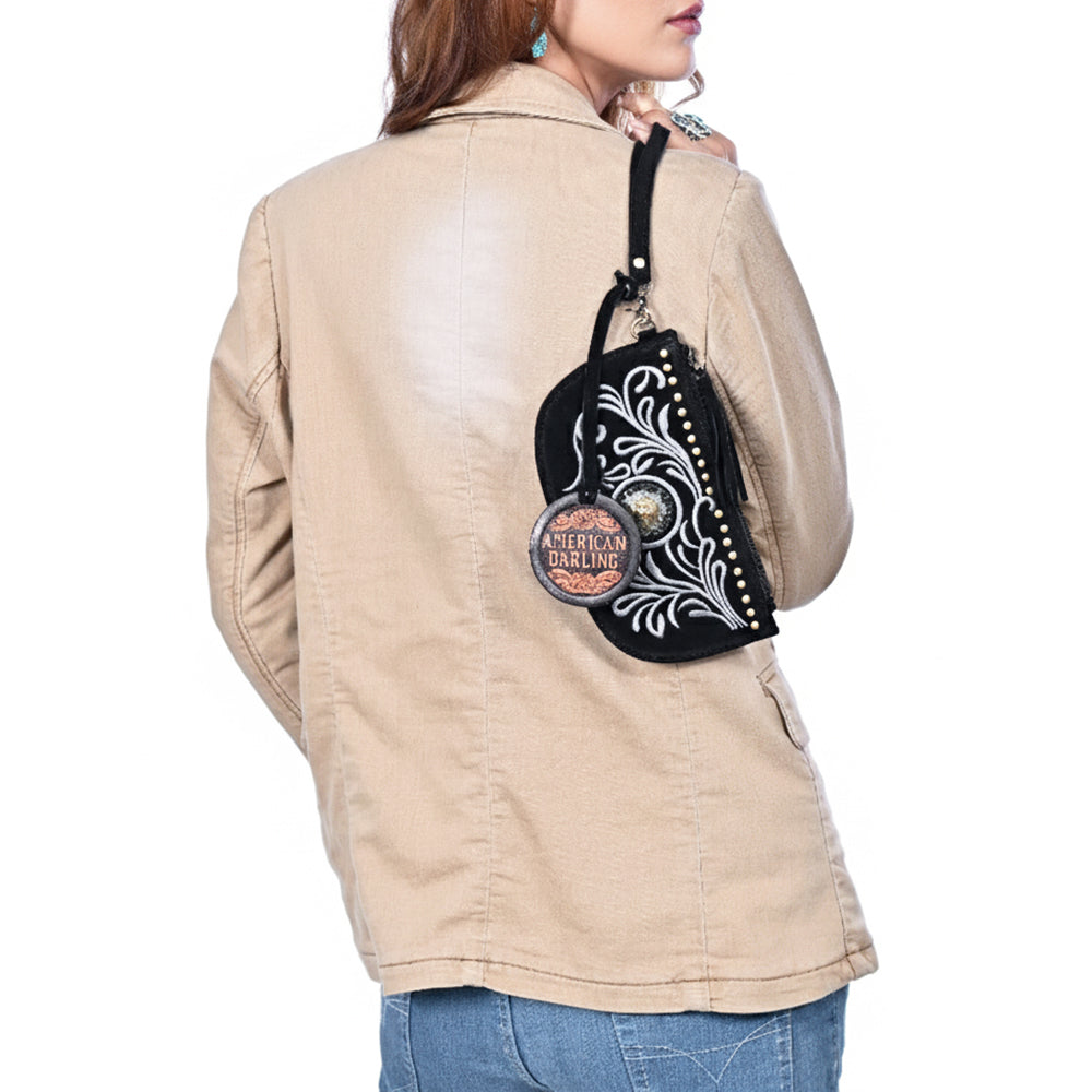 American Darling Genuine Suede Leather Western Wristlet Clutch Floral Scroll