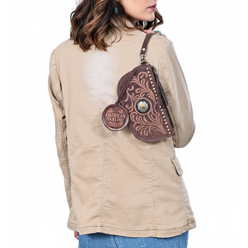 • A luxurious and western handcrafted leather collection designed by American Darling here in the heart of Texas. These gorgeous creations deliver a blend of western culture and heritage along with the latest fashion and trendy appeal. It makes your appearance eye-catching by its amazing colors, materials, and meticulous hand work. Eco friendly genuine leather is handpicked and sourced from some of the best tanneries in the world. The bag is made by highly experienced and skilled craftsmen of the industry using the highest quality standard of production.