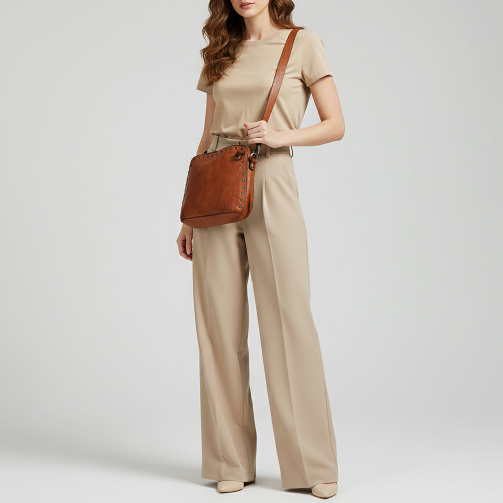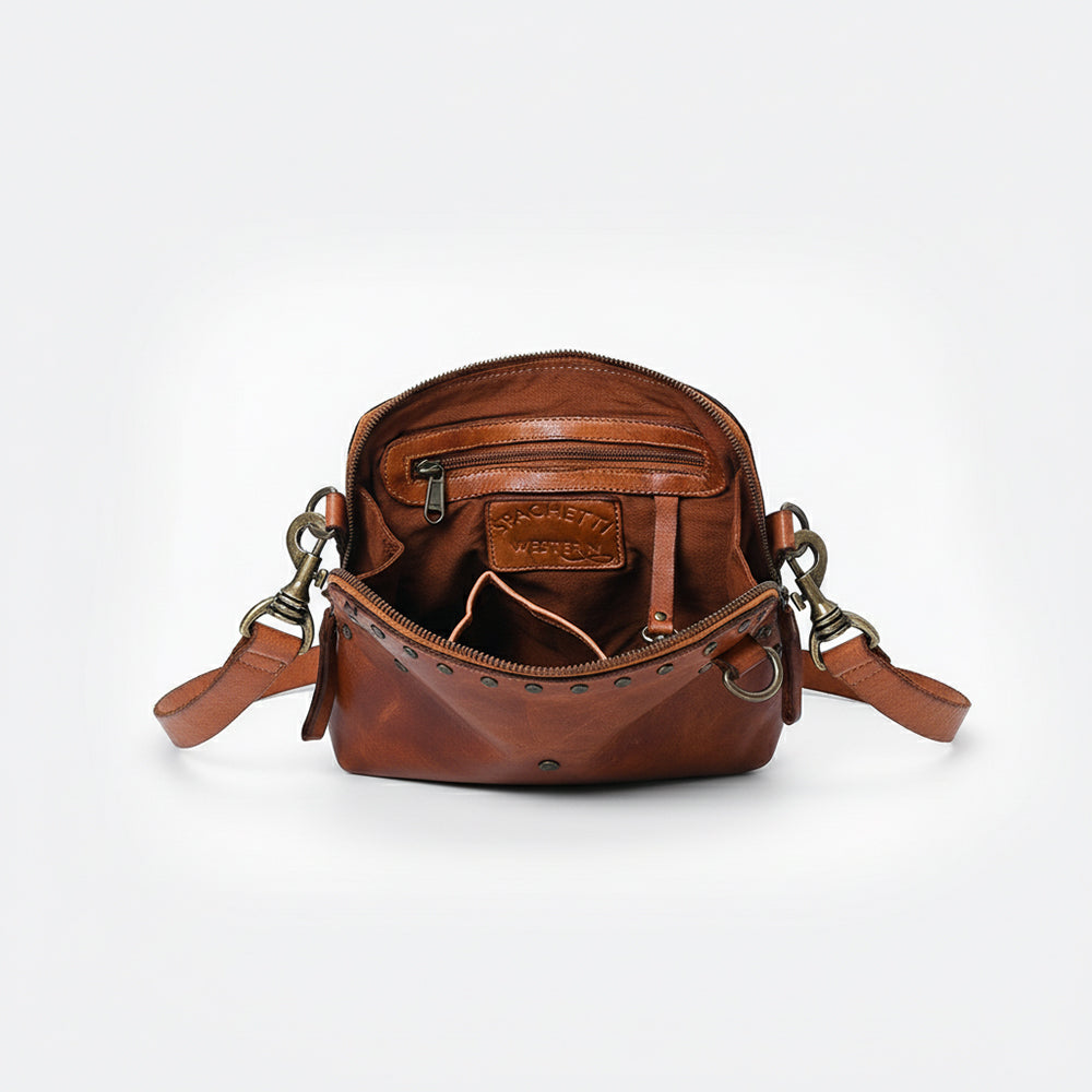 The Spaghetti Western creations undergo a meticulous hand-dyeing process utilizing an individualized method. Each creation is meticulously guided through multiple stages, featuring a proprietary approach involving hand dyeing, buffing, brushing, and finishing. This process demands significant time and attention to detail. Nonetheless, the outcome is a captivating blend of vintage and patina aesthetics, ensuring that each creation possesses its own unique and exclusive appearance.