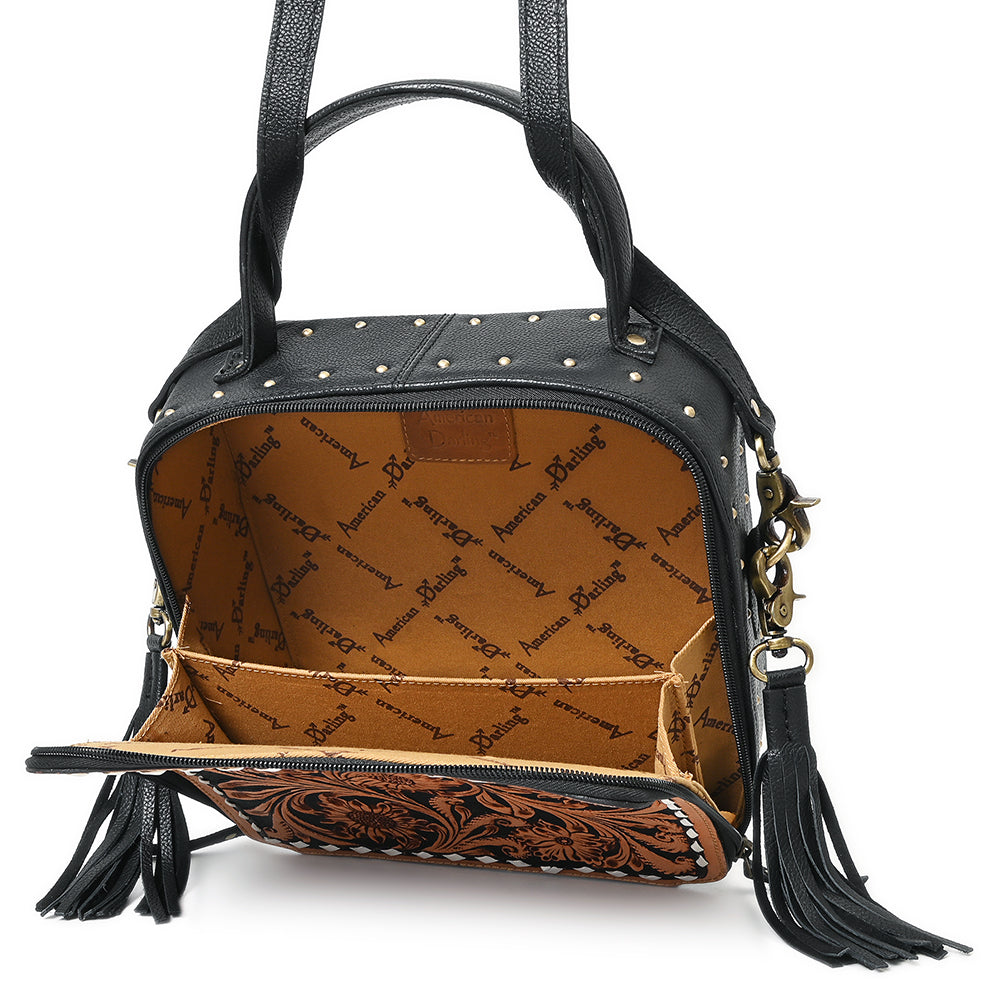 A Luxurious And Western Handcrafted Leather Collection Designed By American Darling Here In The Heart Of Texas. These Gorgeous Creations Deliver A Blend Of Western Culture And Heritage Along With The Latest Fashion And Trendy Appeal. It Makes Your Appearance Eye-Catching By Its Amazing Colors, Materials, And Meticulous Hand Work. Eco Friendly Genuine Leather Is Handpicked And Sourced From Some Of The Best Tanneries In The World. The Bag Is Made By Highly Experienced And Skilled Craftsmen Of The Industry Using The Highest Quality Standard Of Production.