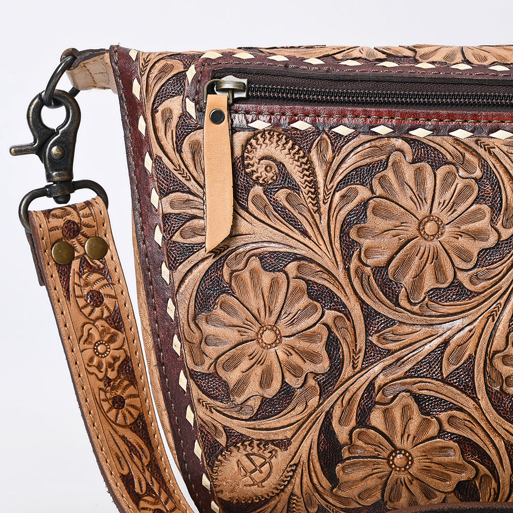 Hand-Tooled Western Leather Crossbody Bag – Genuine Leather Floral Carved Purse with Adjustable Strap