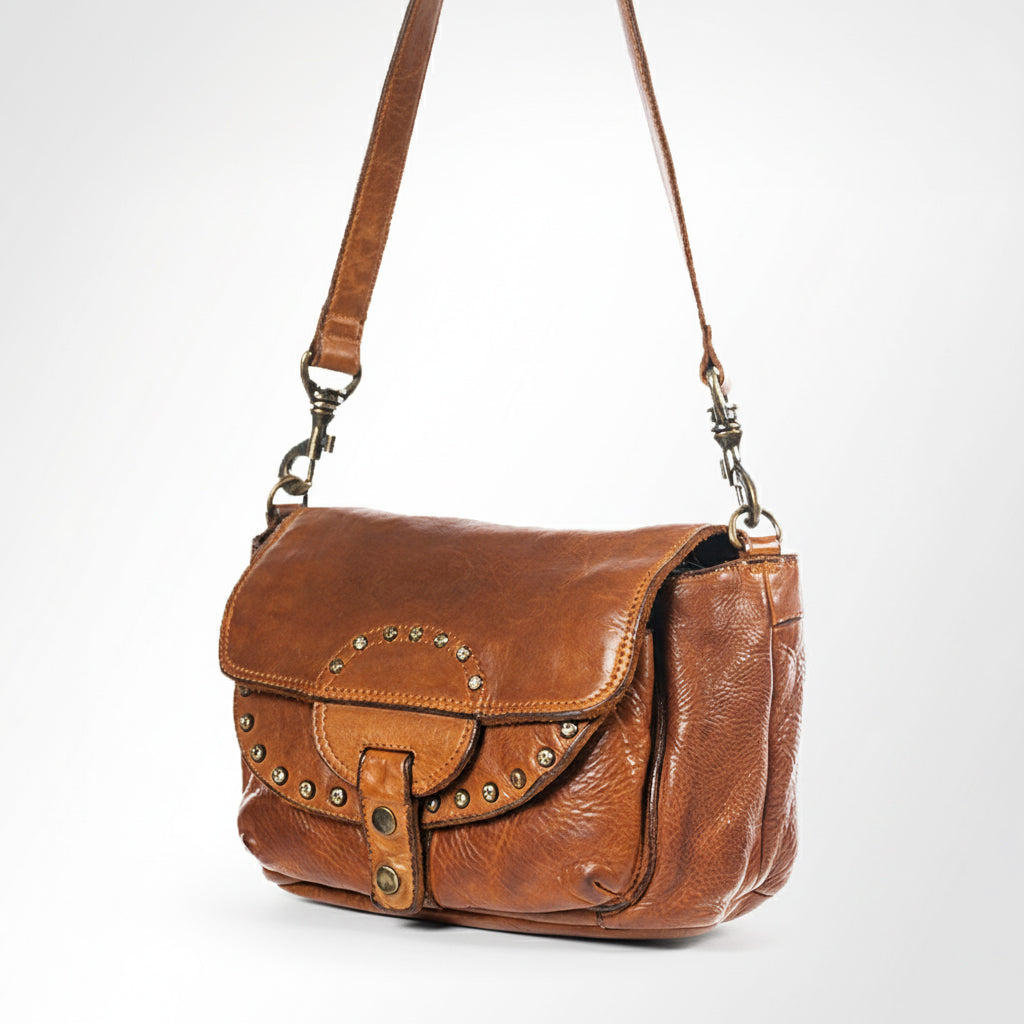 Spaghetti Western Swc162Tan Cross Body I Vintage Handmade Drum Dyed Genuine European Cowhide Leather Women Bag Western Handbag Purse