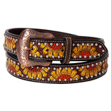 BAR H EQUINE Sunflower Floral Hand Painted Western Leather Men And Women Belt Brown