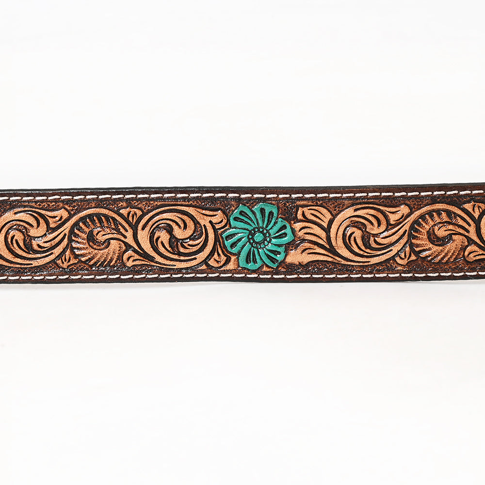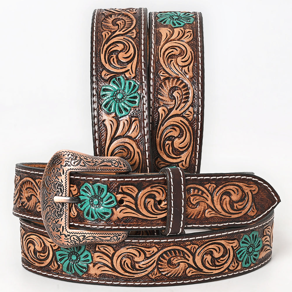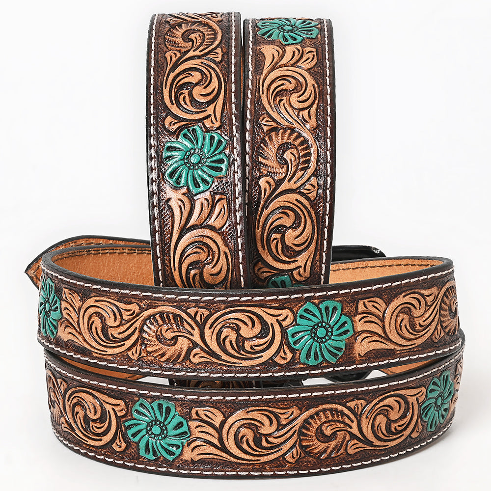 BAR H EQUINE Turquoise Flower Hand Painted Western Leather Men And Women Belt Brown