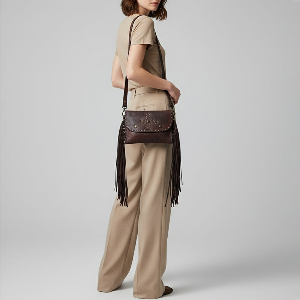 Spaghetti Western Swc147Tan Envelope Vintage Handmade Drum Dyed Genuine European Cowhide Leather Women Bag Western Handbag Purse