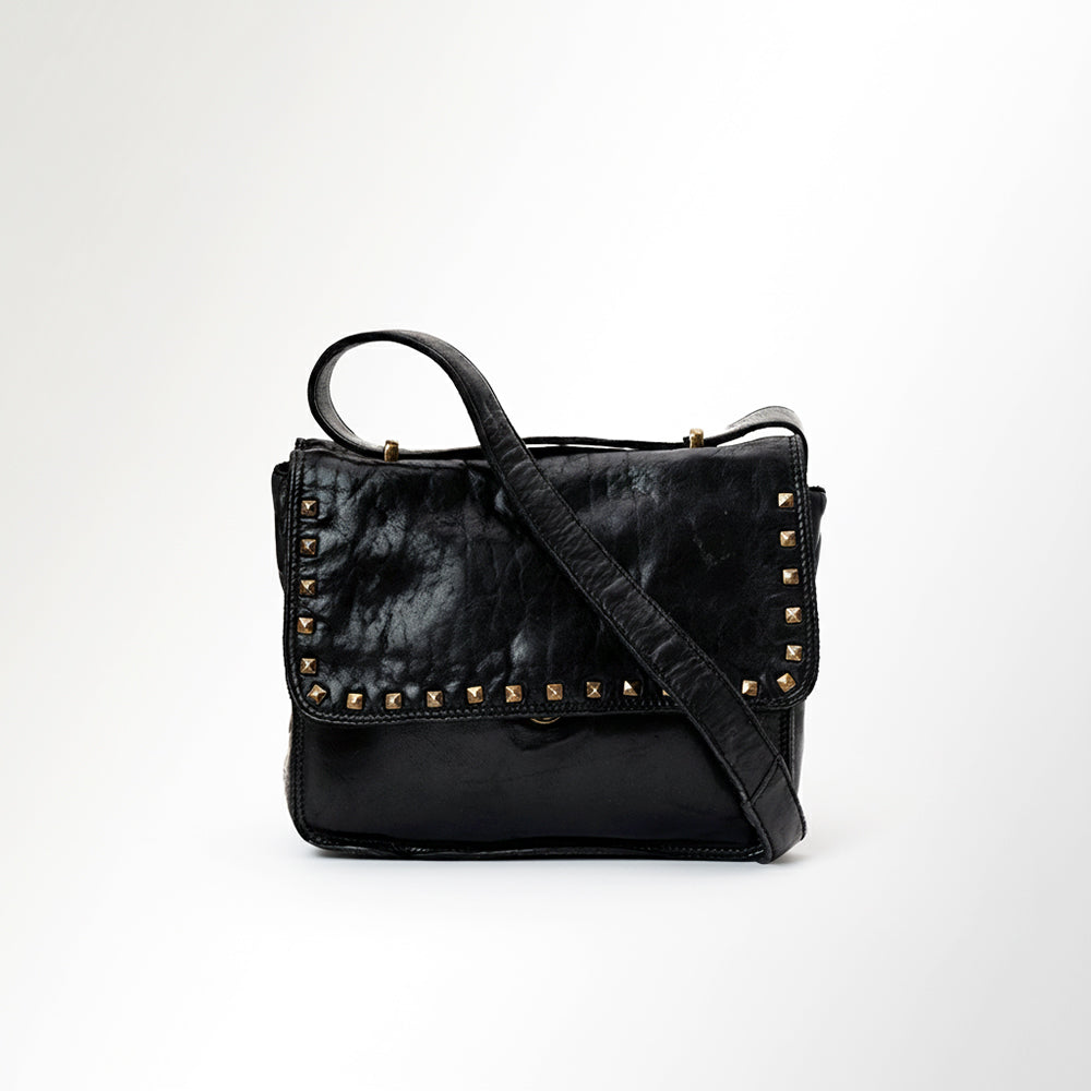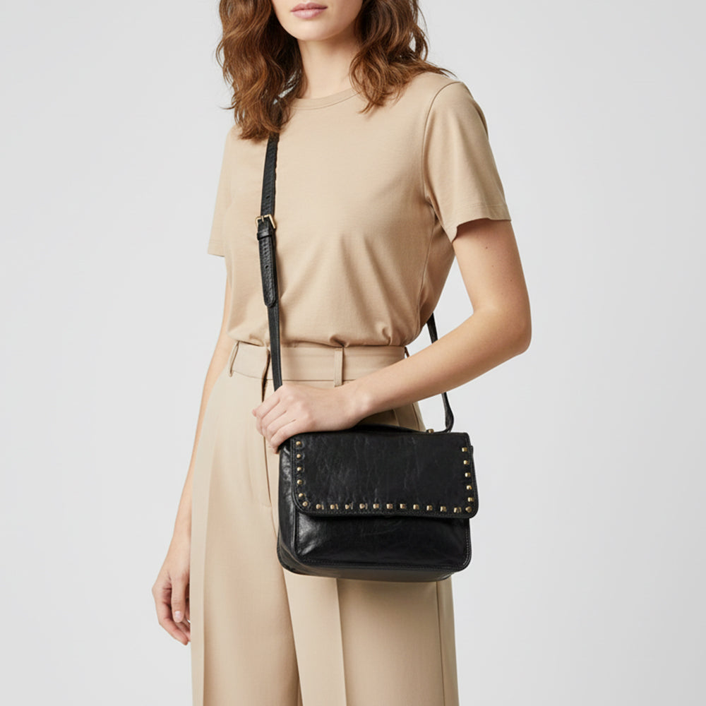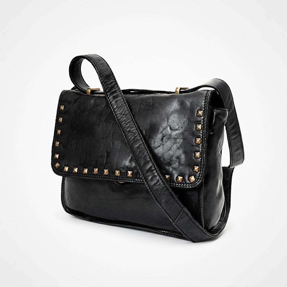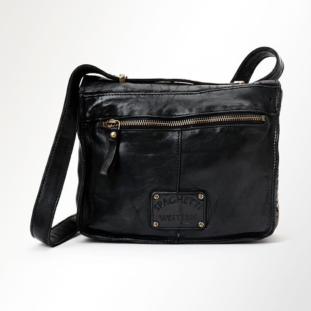 Spaghetti Western Swc163Blk Envelope Vintage Handmade Drum Dyed Genuine European Cowhide Leather Women Bag Western Handbag Purse