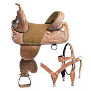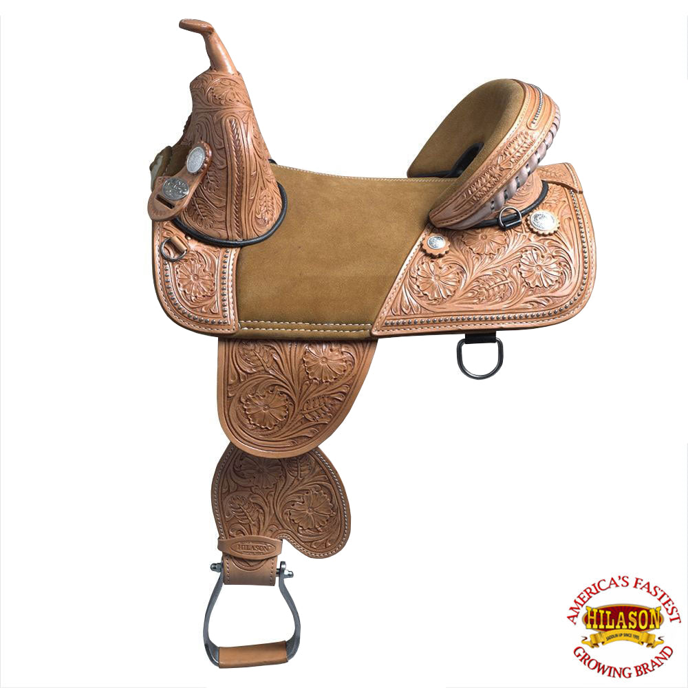 HILASON Treeless Western Trail Barrel Racing American Leather Saddle With Tack Set