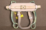 The Hilason Solid Brass Horse Mouth Hackamore Bit with Natural Leather is a unique bitless bridle designed to offer a blend of functionality and comfort for both horse and rider. This hackamore features a solid brass construction for the nosepiece and shanks, providing durability and a classic aesthetic. The natural leather noseband adds an element of comfort, as it molds to the horse’s nose over time, reducing the chances of irritation or discomfort. Unlike traditional bits that work inside the mouth, this hackamore applies pressure to the horse's nose and jaw, making it an ideal option for horses with sensitive mouths or riders who prefer not to use a mouth bit.