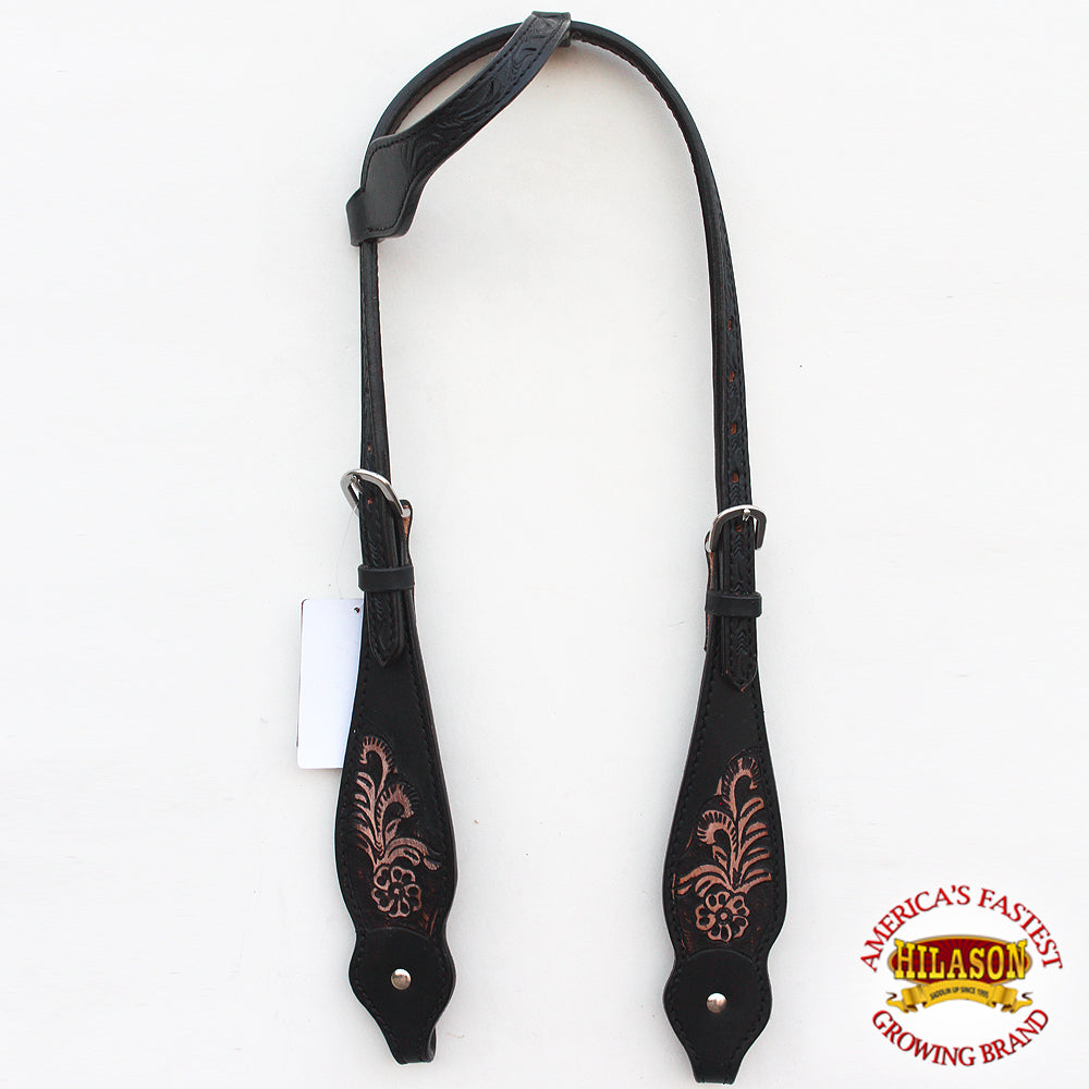 Hilason Western Horse Headstall Bridle American Leather Black Floral