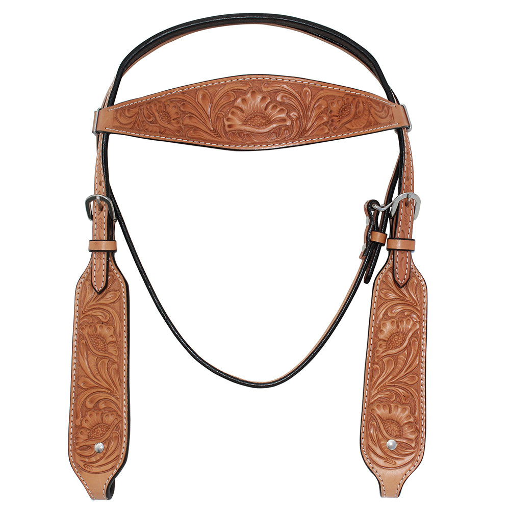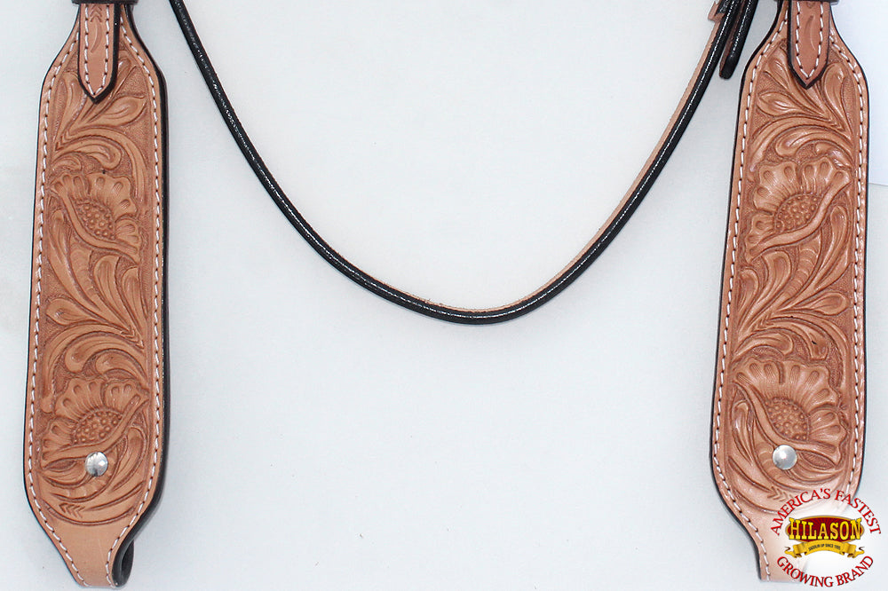 Hilason Western Horse Headstall Bridle American Leather Tan Floral Carved