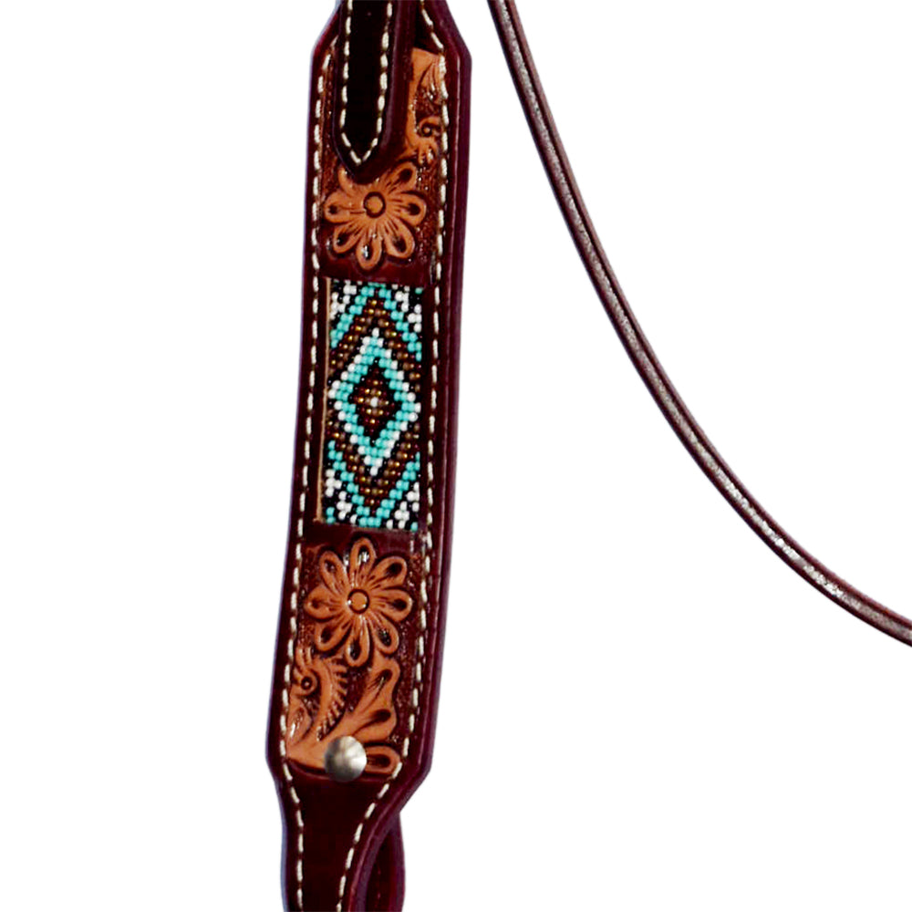 • Features -: This Horse Bridle Headstall Features A Detailed Hand Tooled with beaded Design In A Hand-Finished Tan Color. We Use Premium Genuine American Cowhide Skirting Leather, Sourced From The Finest Tanneries In The World. The Hardware In Our Horse Headstall Is Crafted From Premium, Durable Stainless Metal.