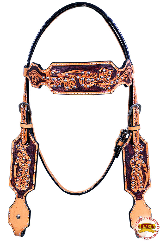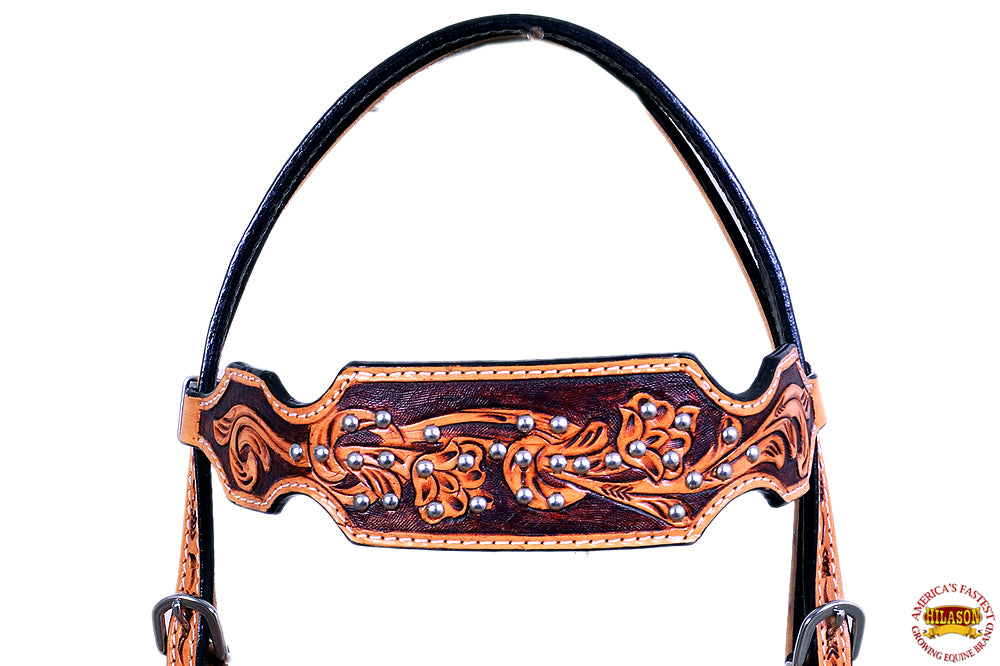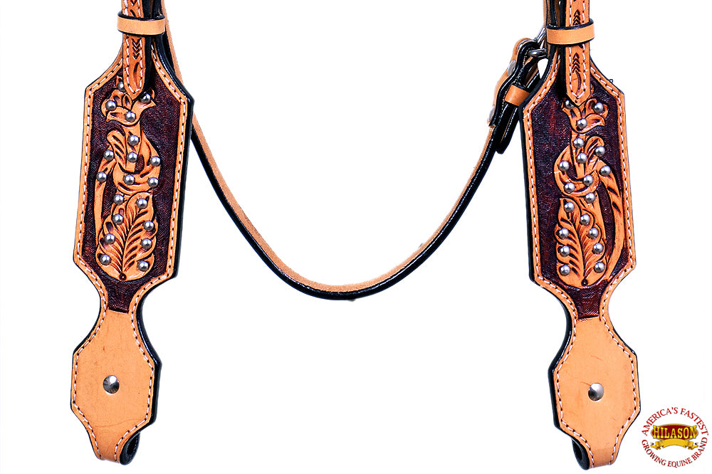 HILASON Western Horse Headstall Tack Genuine American Leather Tan