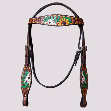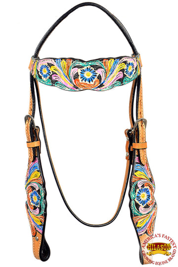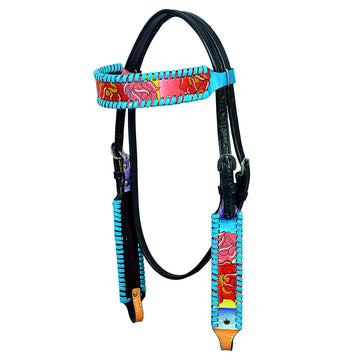 BAR H EQUINE Western Horse Floral Hand Painted Genuine Leather Headstall Brown