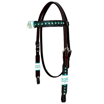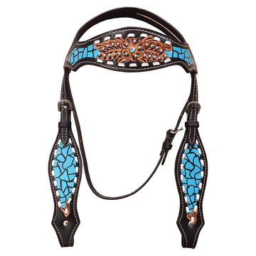 Hilason Western Leather Horse Headstall Turquoise Crocodile Brown
