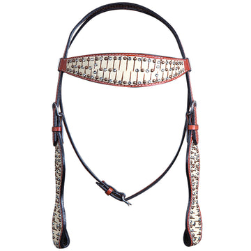 Hilason Western Horse Headstall Bridle American Leather Brown Beaded Crocodile