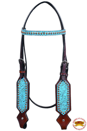 HILASON Western Genuine Leather Horse Headstall Tack Tan with Turquoise