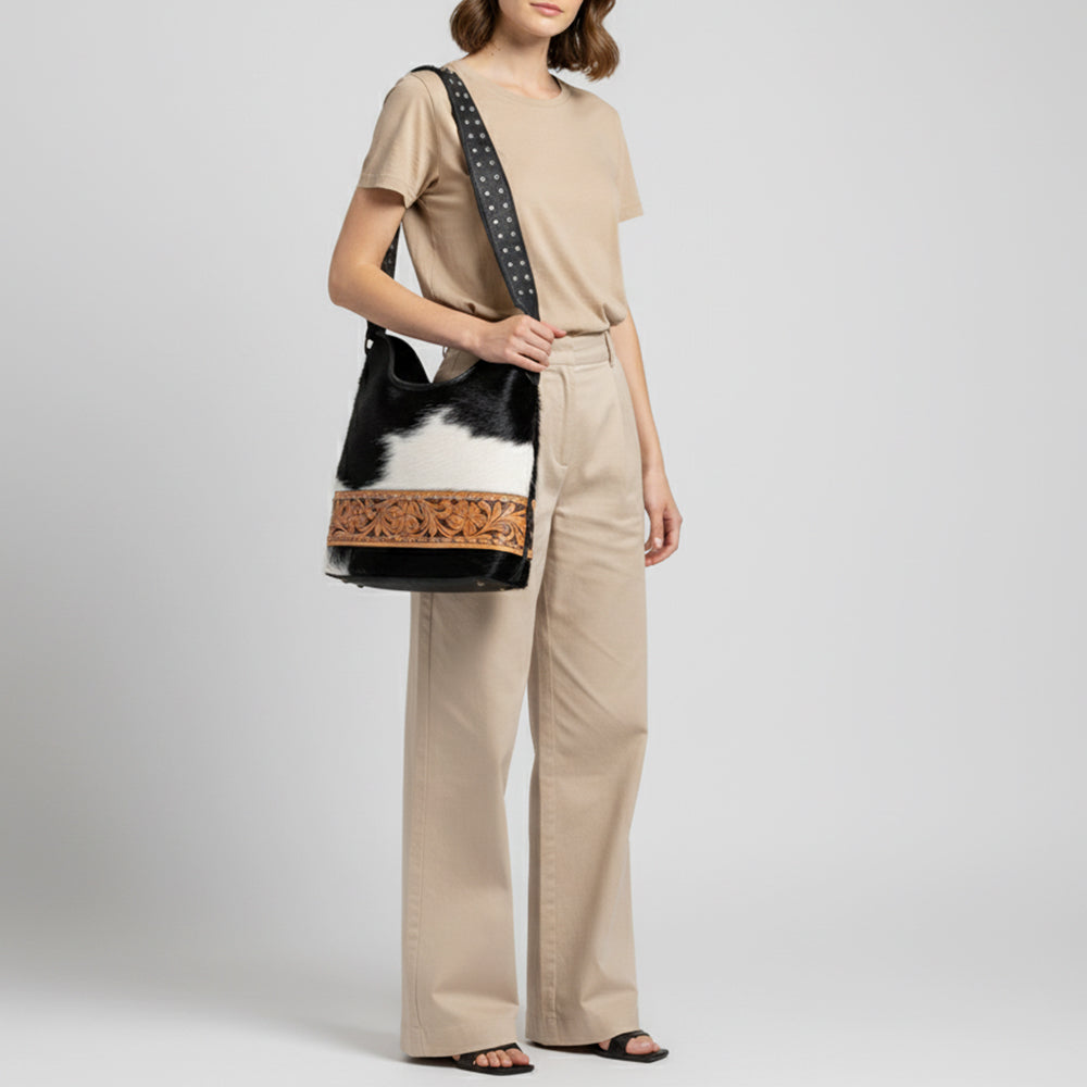 American Darling Handcrafted Cowhide Leather Hobo Bag with Tooled Floral Details - Western Luxe Fashion, Genuine Leather, Comfortable & Durable