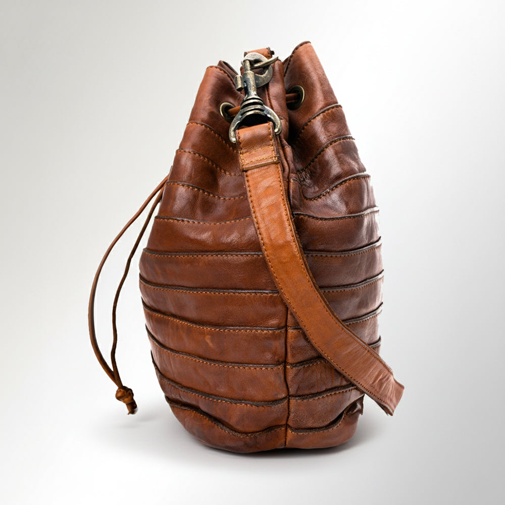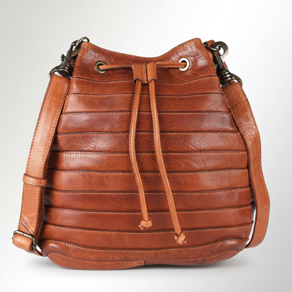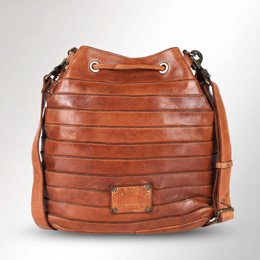 Spaghetti Western Swc138Btan Bucket Vintage Handmade Drum Dyed Genuine European Cowhide Leather Women Bag Western Handbag Purse