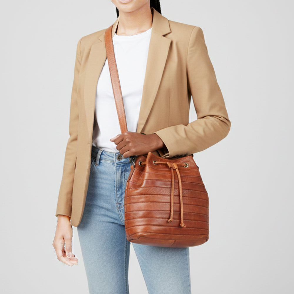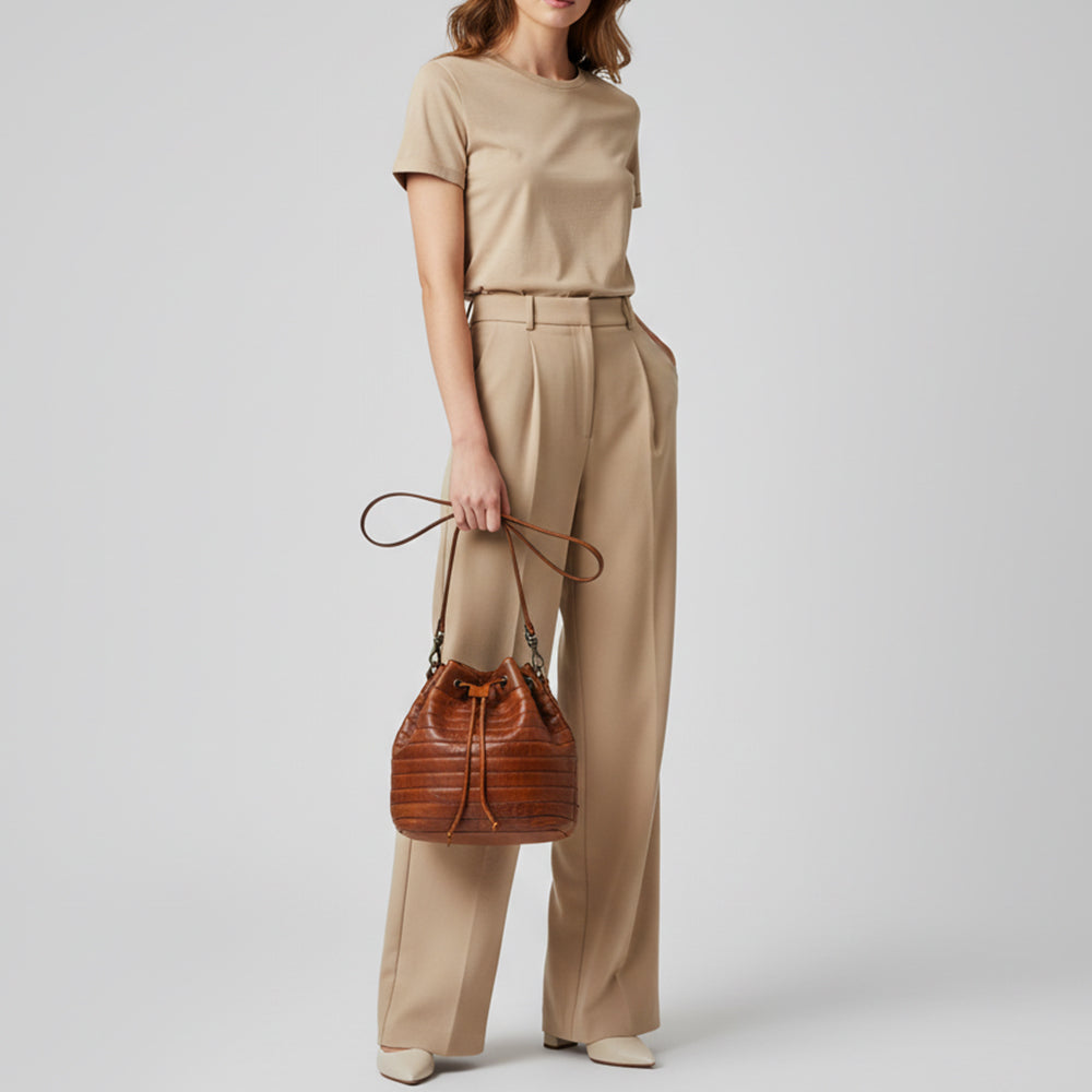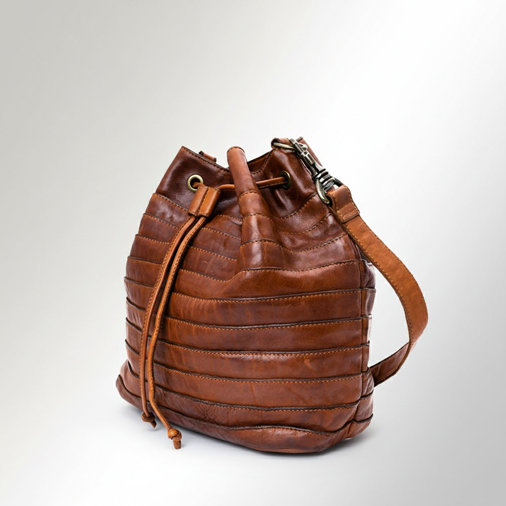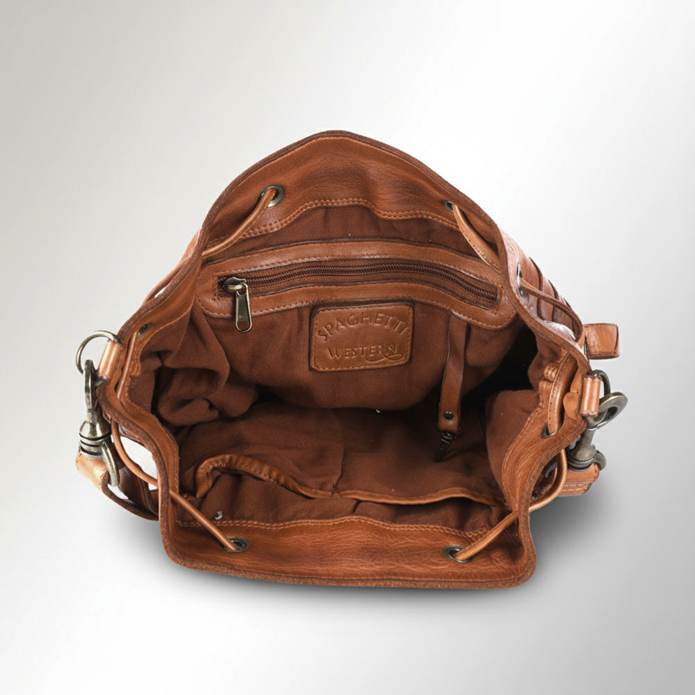 Spaghetti Western Swc138Btan Bucket Vintage Handmade Drum Dyed Genuine European Cowhide Leather Women Bag Western Handbag Purse