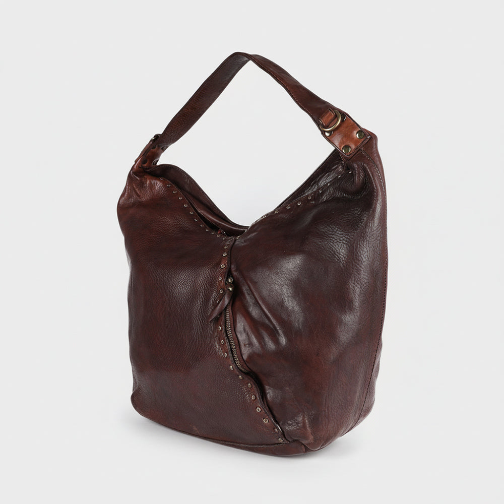 Spaghetti Western Swc176Brn Hobo Vintage Handmade Drum Dyed Genuine European Cowhide Leather Women Bag Western Handbag Purse
