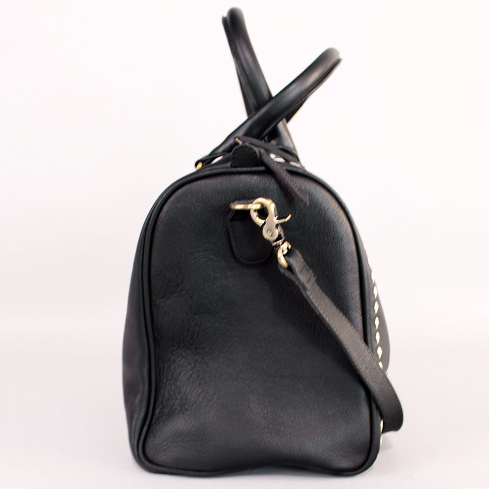 Laurel Midnight Rodeo Black Grain Leather Duffel Bag