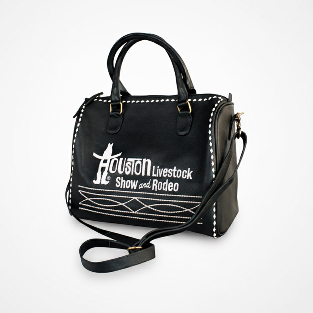Sleek, structured, and full of Western attitude, the Laurel Midnight Rodeo Black Grain Leather Duffel Bag is a bold statement piece from an Official Licensed Vendor of the Houston Livestock Show & Rodeo. Designed for the modern cowgirl who values both fashion and function, this handbag blends rugged durability with refined style.