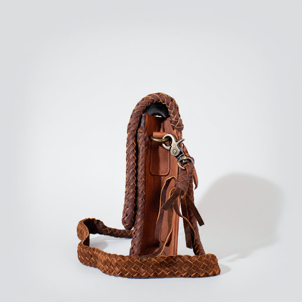 Defined by intricate hand-braided edges and striking black embroidery, this shoulder bag is handcrafted from premium genuine leather. The compact, structured design features a unique woven leather strap and a convenient back zipper pocket, making it the perfect choice for festivals or daily wear.