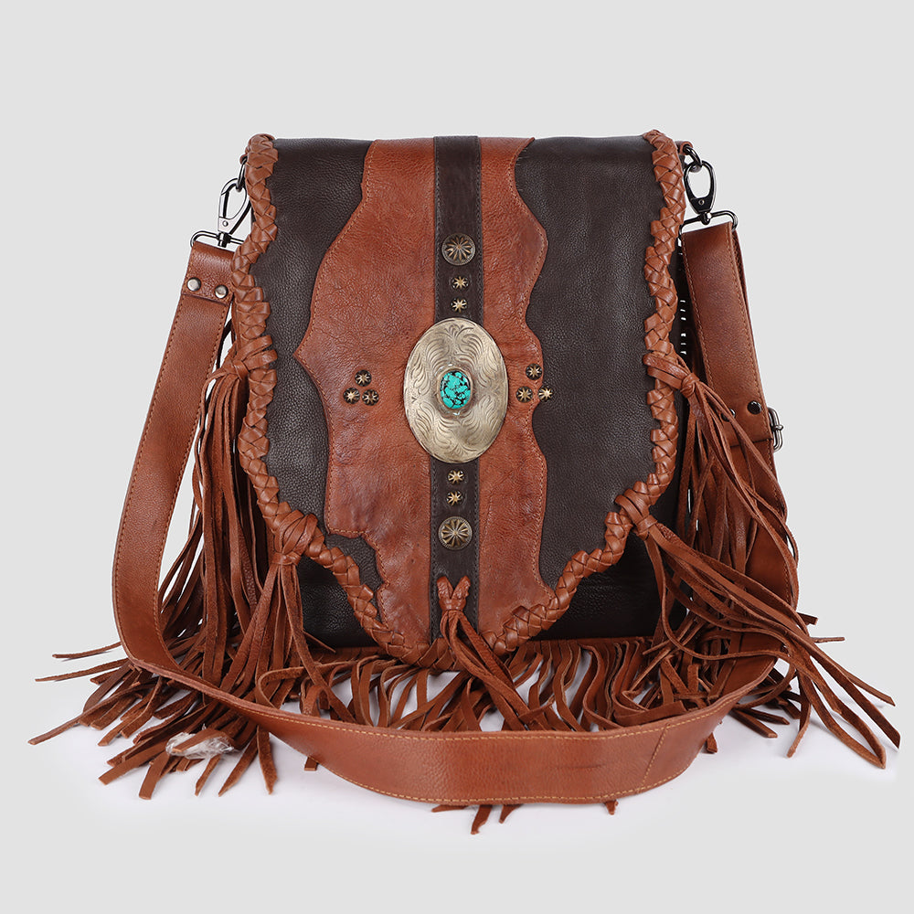 • Premium Quality Material: This Is A Handmade American Darling Women'S Messenger Bag Made With Soft And Supple Handpicked Genuine Cowhide Leather. High Quality Soft And Supple Eco-Friendly Vegetable Tanned Full Grain Genuine Leather Is Also Used To Make This Handbag That Ages Beautifully As It Wears. Our Messenger Bags Are Complemented With A Beautiful Leather Fringe Giving It A Western Look. Available In Size: 13.5In (H) X 13.5In (W) X 3.5In (D).